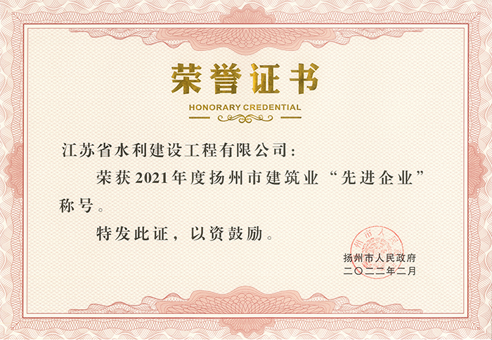 • 2022年度揚州市建筑業先進企業榮譽證書